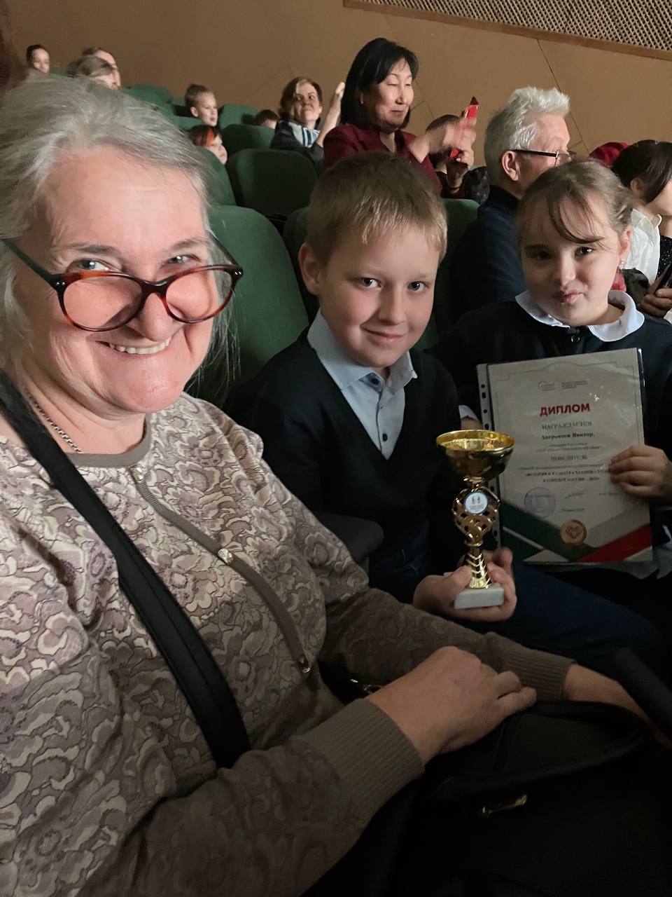 Победители пришли сюда не одни. Родные и учителя - все те, кто поддерживал интерес ребят к культуре и истории нашей страны, кто помогал проводить непростые культурологические исследования - и в этот день были рядом. Виктор разделил радость этого события с бабушкой Еленой Григорьевной, сестрой Ариной и учителем Натальей Васильевной Соболевой.