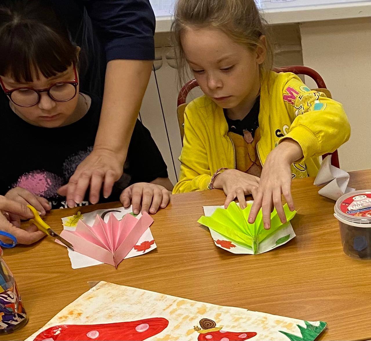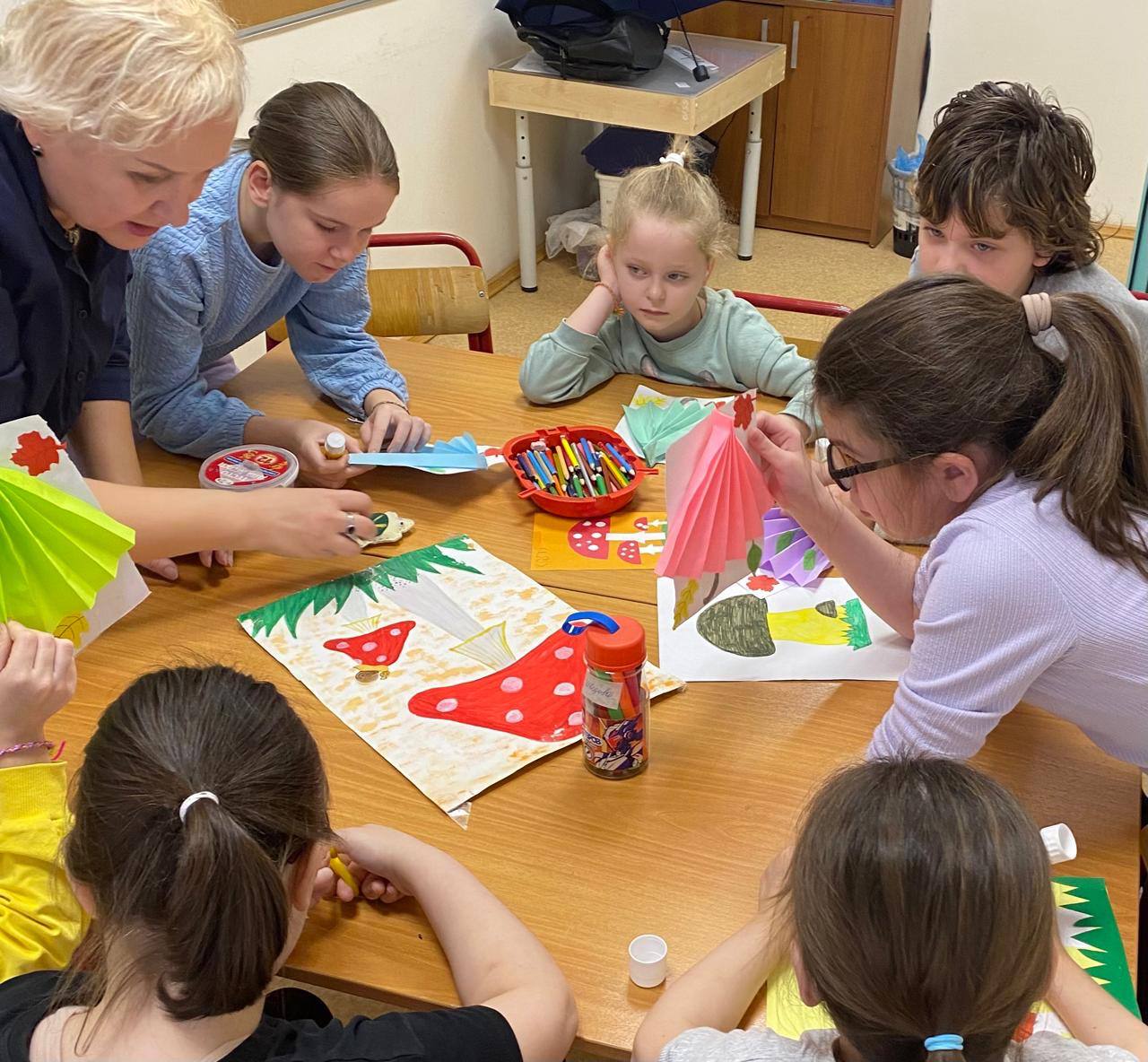 Девочки 2-го отделения прочли стихотворение Валентина Берестова. Вдохновившись поэзией, младшеклассницы создали свой собственный, неповторимый бумажный лес, полный тайн и загадок. В этом лесу, среди пожелтевших листьев и пушистых мхов, укрылись от глаз далеко не простые, а самые что ни на есть «хитрые грибочки» — каждый со своим характером и своей историей.