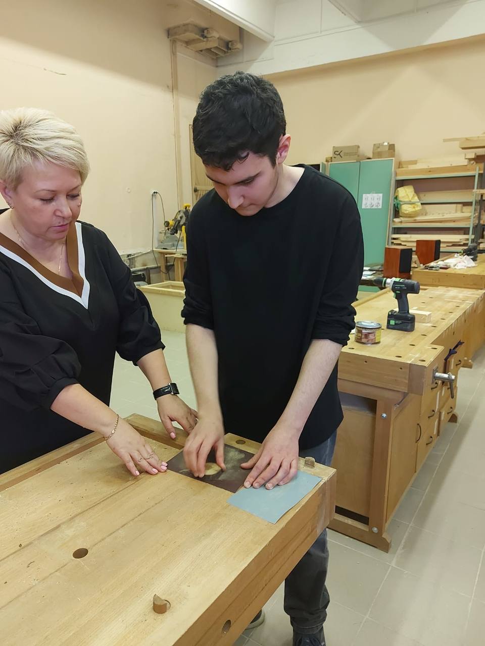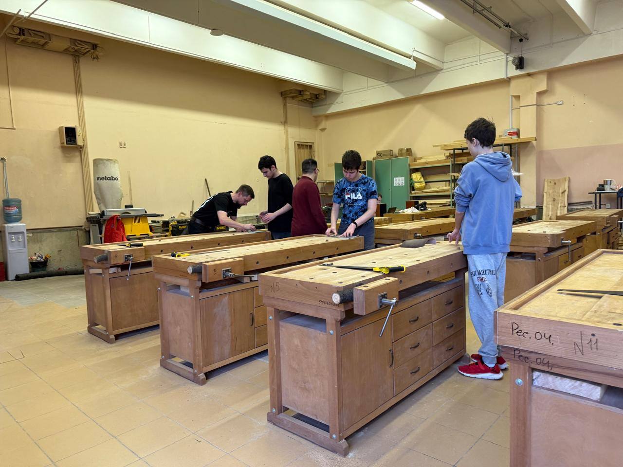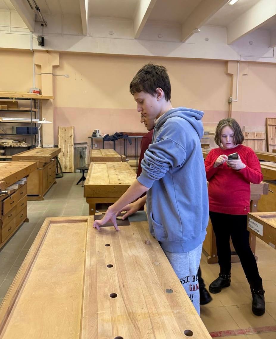 В рамках проекта «Билет в будущее» ученики 8-го класса совместно с Ким Ольгой Юрьевной и Терешиным Петром Викторовичем посетили мастерские колледжа №7 по направлению «Плотник-столяр». Целью визита было познакомить школьников с основами ремесла и помочь им в выборе дальнейшего профессионального пути.