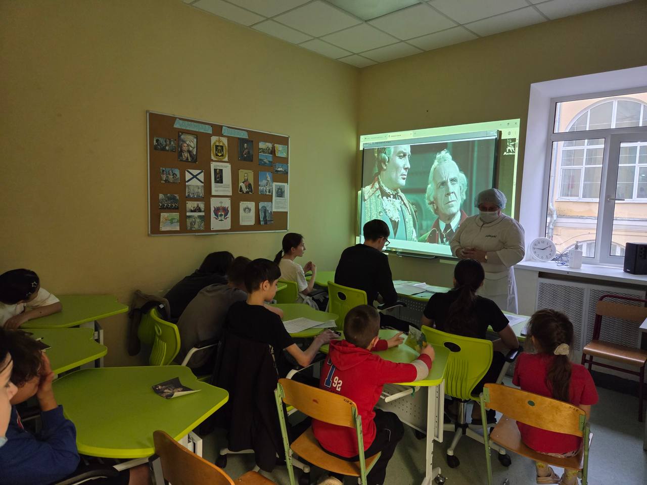 До начала сеанса учителя истории коротко рассказали о жизни и деятельности известного русского адмирала Федора Ушакова, под командованием которого был создан Черноморский флот и одержаны победы над турецким флотом в Русско-турецкой войне 1787–1791 годов.
