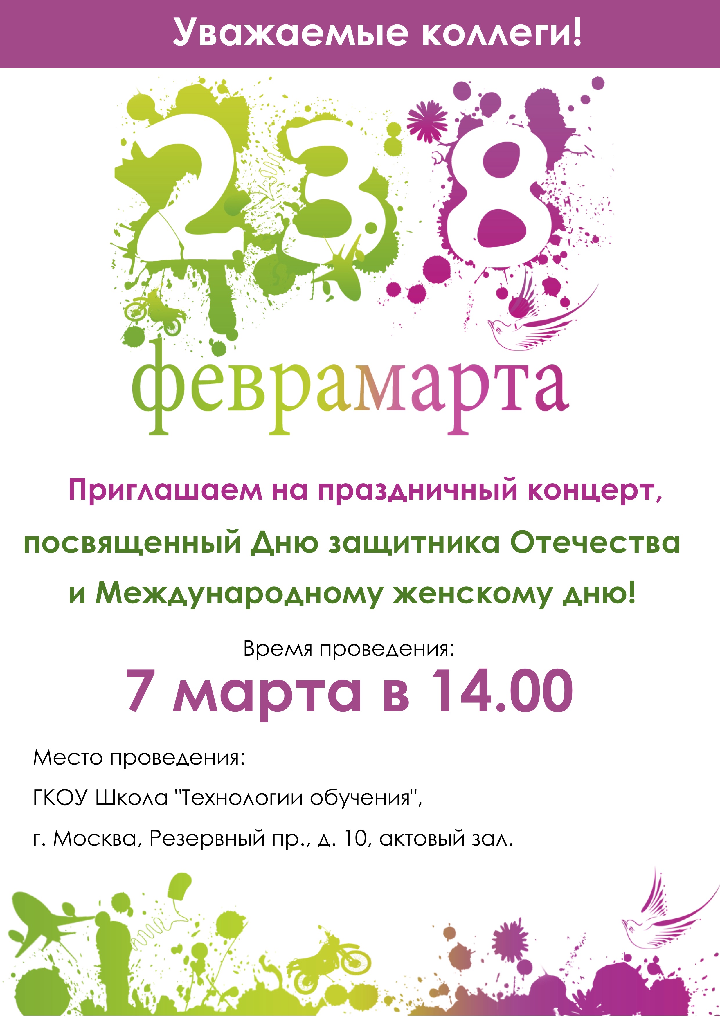 Приглашаем на праздничный концерт "238 ФевраМарта"! 02.03.2019