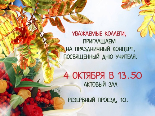 Приглашаем на праздничный концерт, посвященный Дню учителя! 28.09.2019