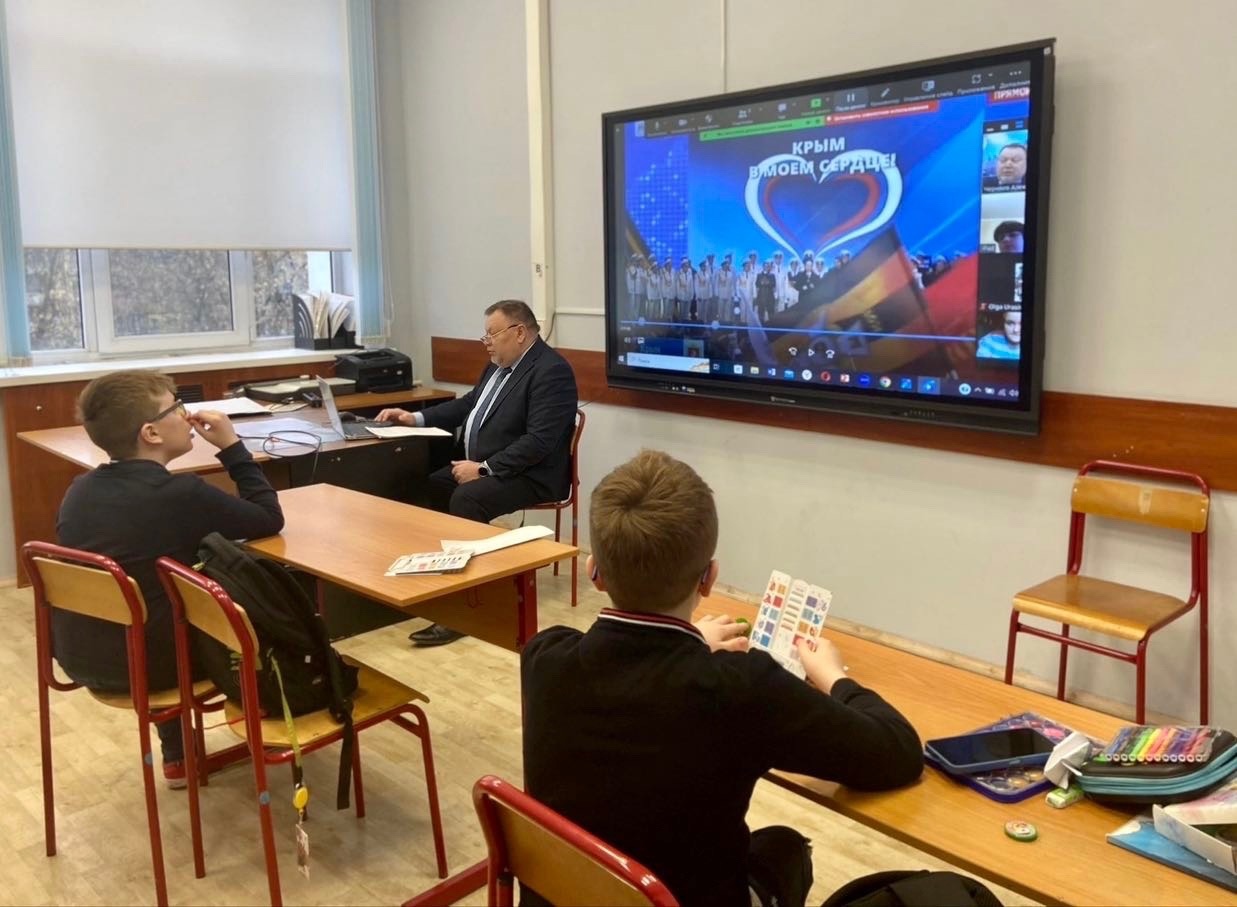 Его провёл ветеран педагогического труда Алексей Викторович Черняев. Тема беседы — «Крым и Севастополь: 10 лет в родной гавани». Ребята познакомились с основными вехами российской истории, касающиеся крымского полуострова. Крым и Севастополь имеют особое значение для России. Решение Крыма и Севастополя воссоединиться с Россией 10 лет назад – осознанный выбор, который восстановил историческую справедливость. После занятия Алексей Викторович поделился опытом с молодыми коллегами-педагогами и дал ценные советы тем, кто только начинает работать с детьми.