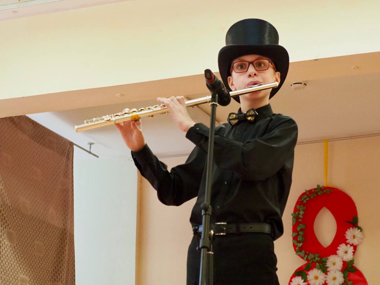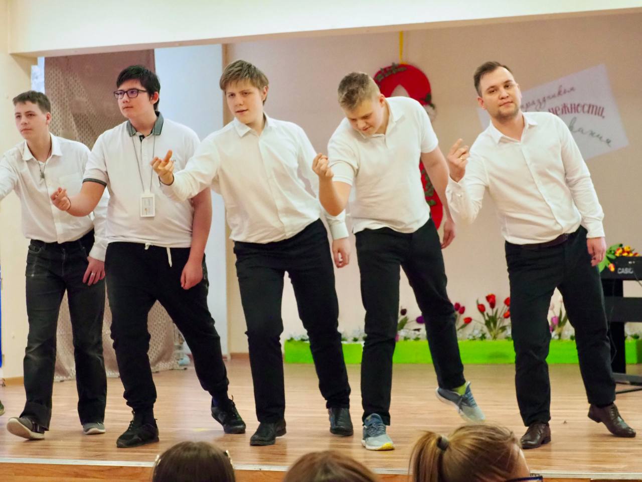 Открыл концерт хор девочек, исполнивший песню "Хорошие девчата", затем ученик i-Школы, который зажигательно спел песню "Дарите женщинам цветы". Не обошлось и без яркого танца со шляпами, который подготовила с ребятами Миронова Валерия Витальевна. Поздравил всех женщин, девушек и девочек Старовойтов Андрей Владимирович. А школьники радовали нас своими талантами: пели, играли на флейте, блистали артистизмом. Завершился концерт общей песней, которую исполнил i-хор, создав атмосферу единства и радости. Спасибо всем, кто сделал этот праздничный концерт особенным и ярким!