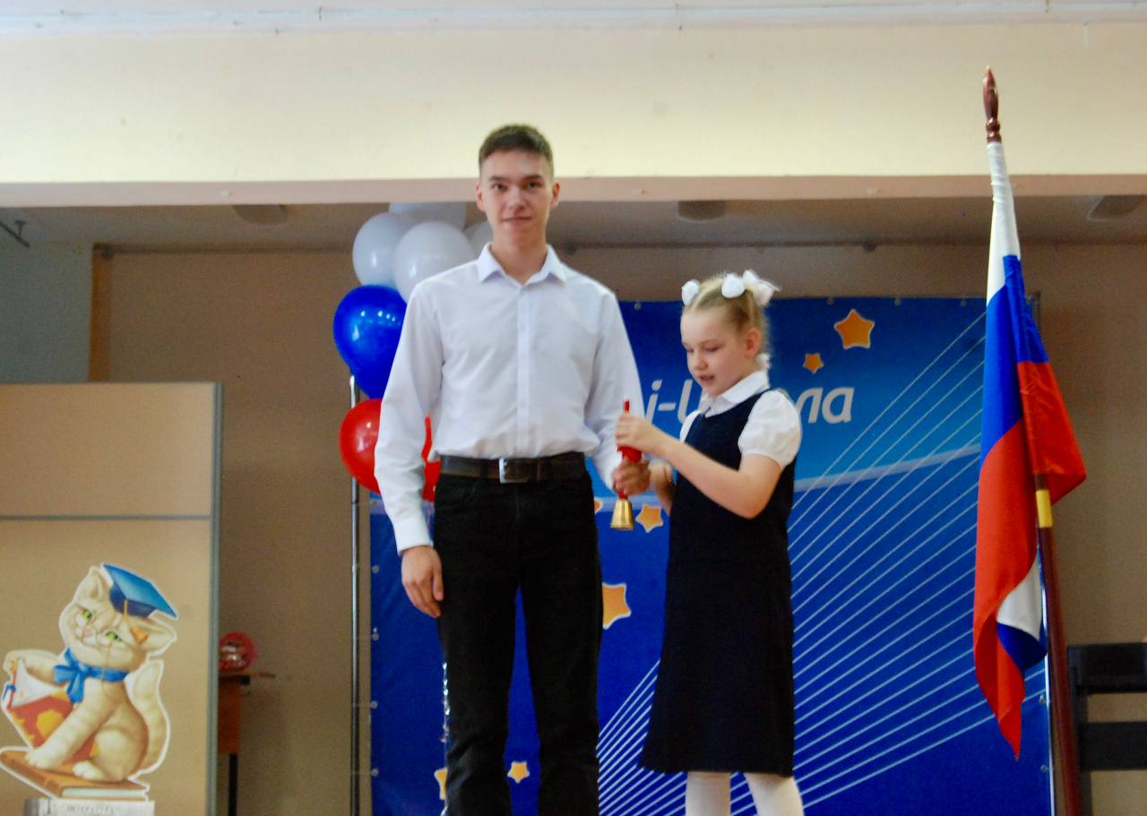 Право дать первый звонок, символизирующий начало занятий, было предоставлено ученику 9-ого класса и первокласснице. Их дружный перезвон колокольчика эхом разнесся по залу, возвещая о старте большого школьного пути для малышей и финишной прямой для выпускников.