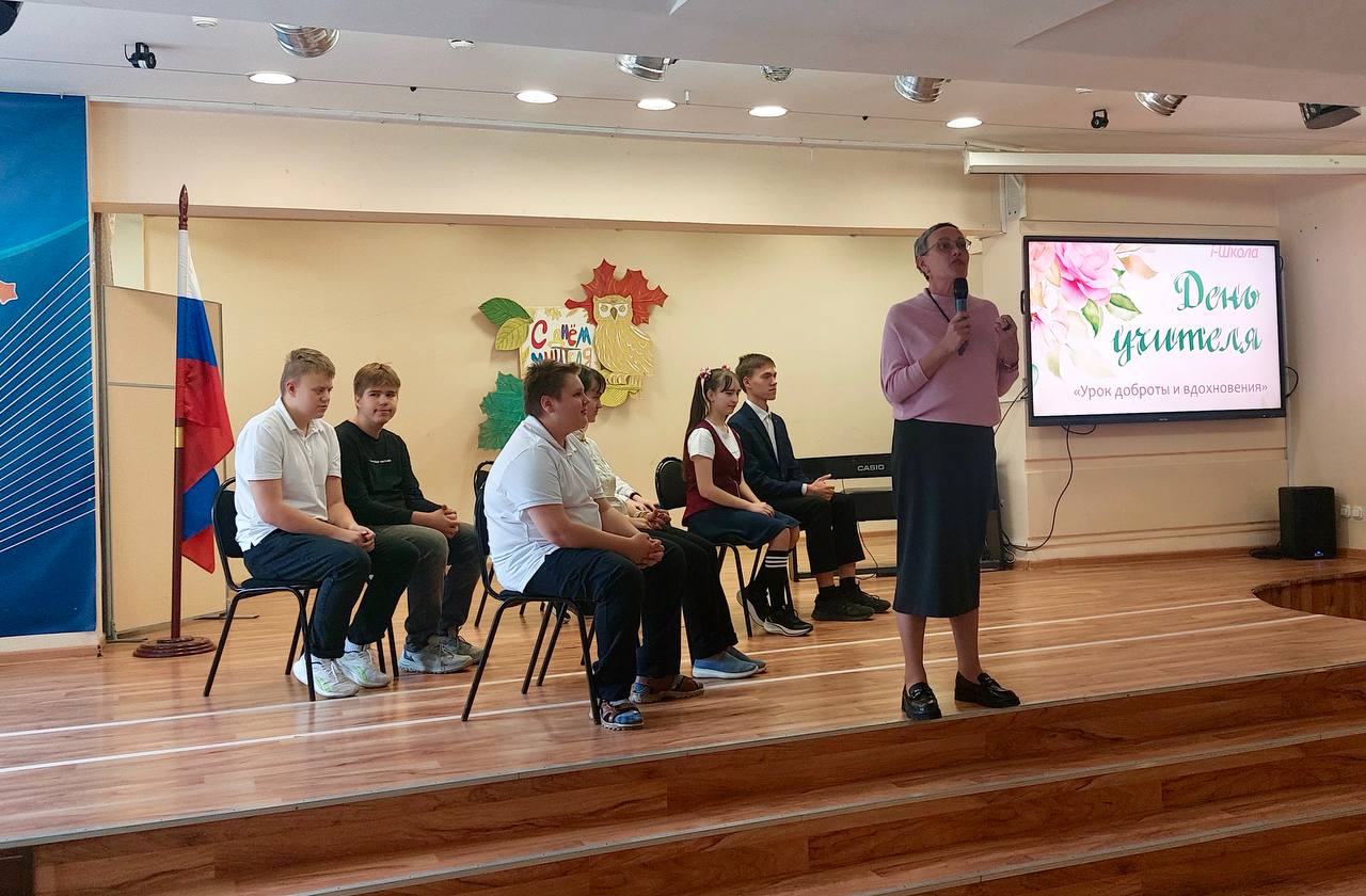 На сцене звучали трогательные песни в исполнении хора и сольных вокалистов. Зрители увидели зажигательный флешмоб и юмористическую сценку из школьной жизни. Особый восторг вызвали инструментальные номера — виртуозная игра на флейте и кларнете. Концерт стал искренним признанием в любви нашим учителям. Поздравляем дорогих педагогов с профессиональным праздником!