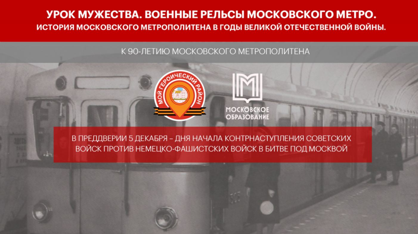 Участники образовательного проекта #Мойгероическийрайон ежегодно проводят Урок мужества, посвящённый этому знаменательному событию в истории Москвы и Великой Отечественной войны 1941-1945 годов. Пока на земле шли бои, под землей ковали Победу. В День начала контрнаступления под Москвой мы вспоминаем не только солдат в окопах. Героями были и те, кто оставался в городе. Каждый день, спускаясь в метро, метрополитеновцы совершали свой скрытый от глаз, но бесценный подвиг.